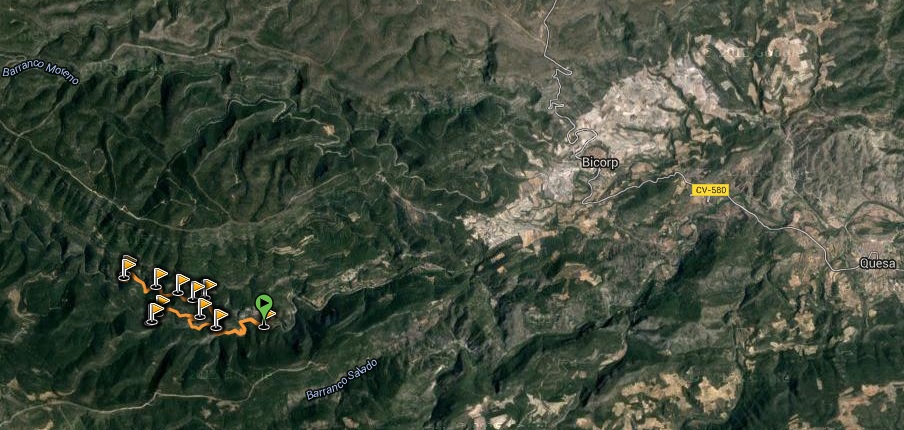Para llegar al inicio de la ruta nos deberemos dirigir primeramente a Bicorp, en plena Muela de Cortes.